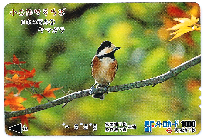 Карта серии "Маленький мир" в подсерии "Дикие птицы Японии". На фото представлена тиссовая синица (ямагара).