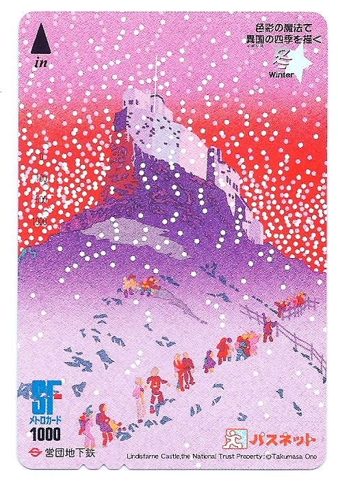 В серии "Времена года" художника-иллюстратора Оно Такумаса представлены сезоны в Англии. На репродукции мы видим Замок Линдисфарн, находящийся в графстве Нортумберленд.