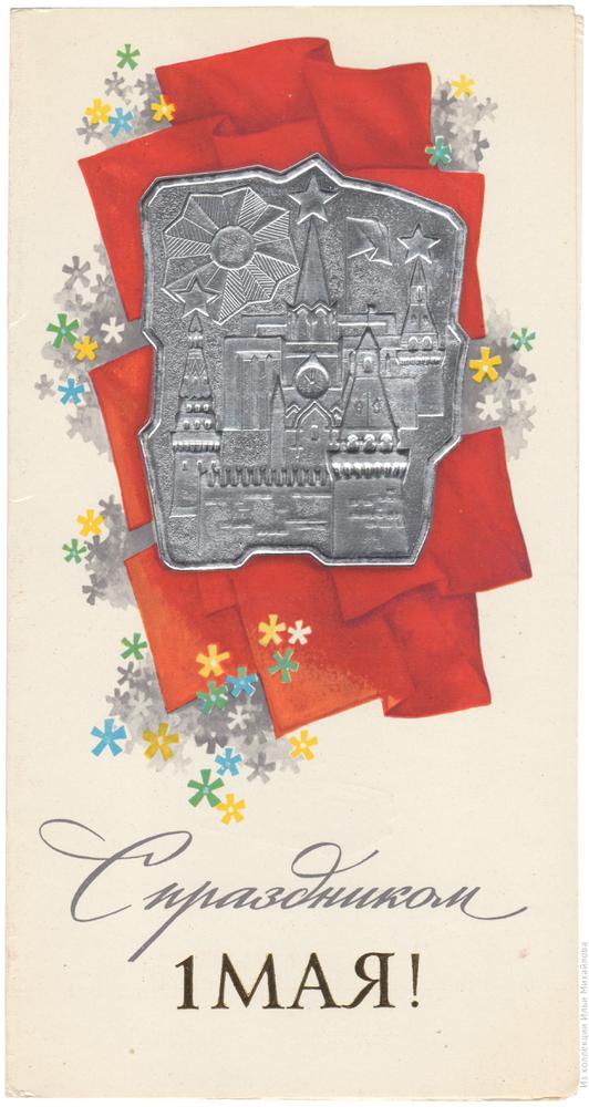 Поздравительная первомайская открытка от ордена Октябрьской Революции и ордена Трудового Красного Знамени Автомобильного завода имени Ленинского комсомола.
