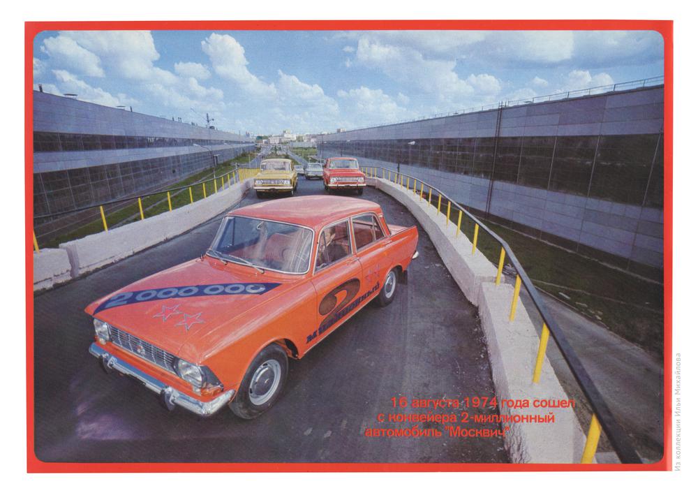 Каждые полторы минуты из ворот завода выходит готовый автомобиль. 16 августа 1974 года с конвейера сошел 2-миллионный Москвич. В «За рулём», правда, указан 1975 год![]()