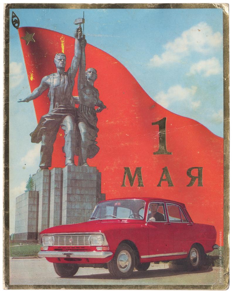 На обложке — раскрашенное ч/б фото Москвича-412 на фоне памятника Рабочему и колхознице (ещё на десятиметровом, а не на оригинальном 34х-метровом постаменте).