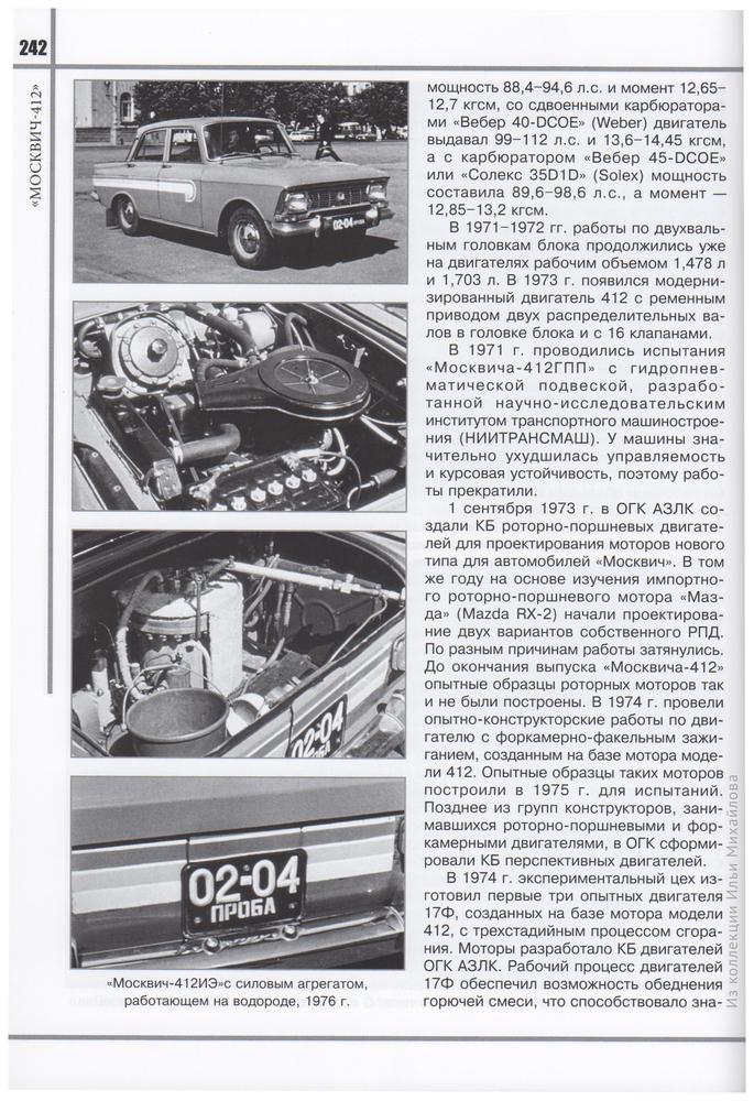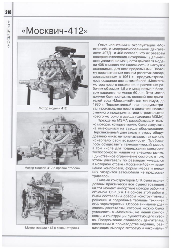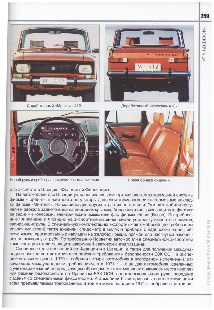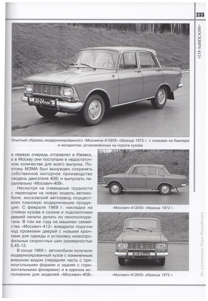 Авторы подробно разобрали историю создания автомобиля Москвич-412, модификации и доработки зарубежных дилеров, спортивные достижения заводской команды.