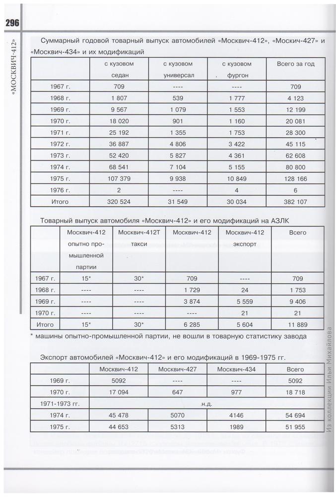 Отдельный раздел посвящен статистике производства и сбыта разных модификаций этой модели.