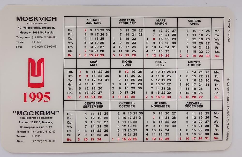Календарик карманный