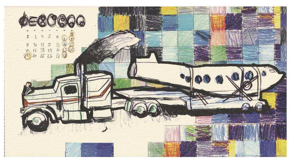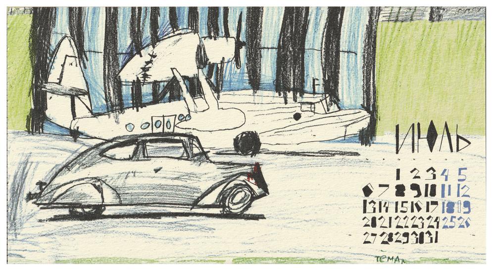 Буклет-календарь Детского центра автомобильного дизайна «Политеха». На открытках — рисунки воспитанников центра. Внешняя картонная обложка изображений не имеет.