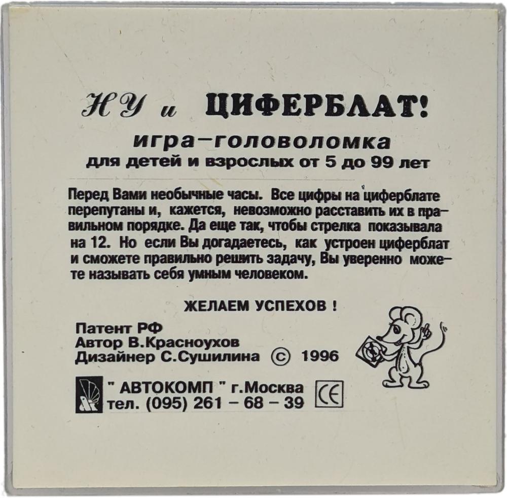 Перед вами головоломка с необычными часами. Все цифры на циферблате перепутываются и, кажется, невозможно расставить их в правильном порядке, да ещё так, чтобы стрелка показывала на 12-ть часов.