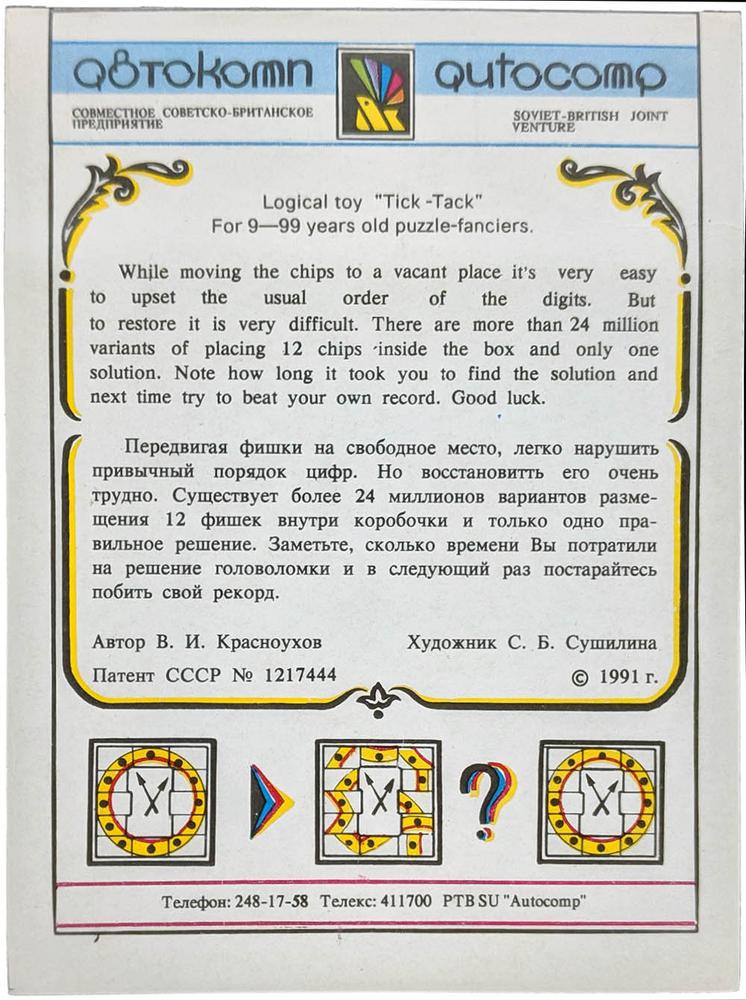 В 90 годы совместное Советско-Британское предприятие "Автокомп" выпускало интересные головоломки Владимира Ивановича Красноухова.