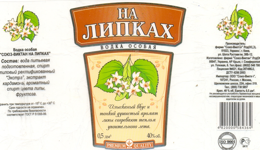 Вид напитка: водка