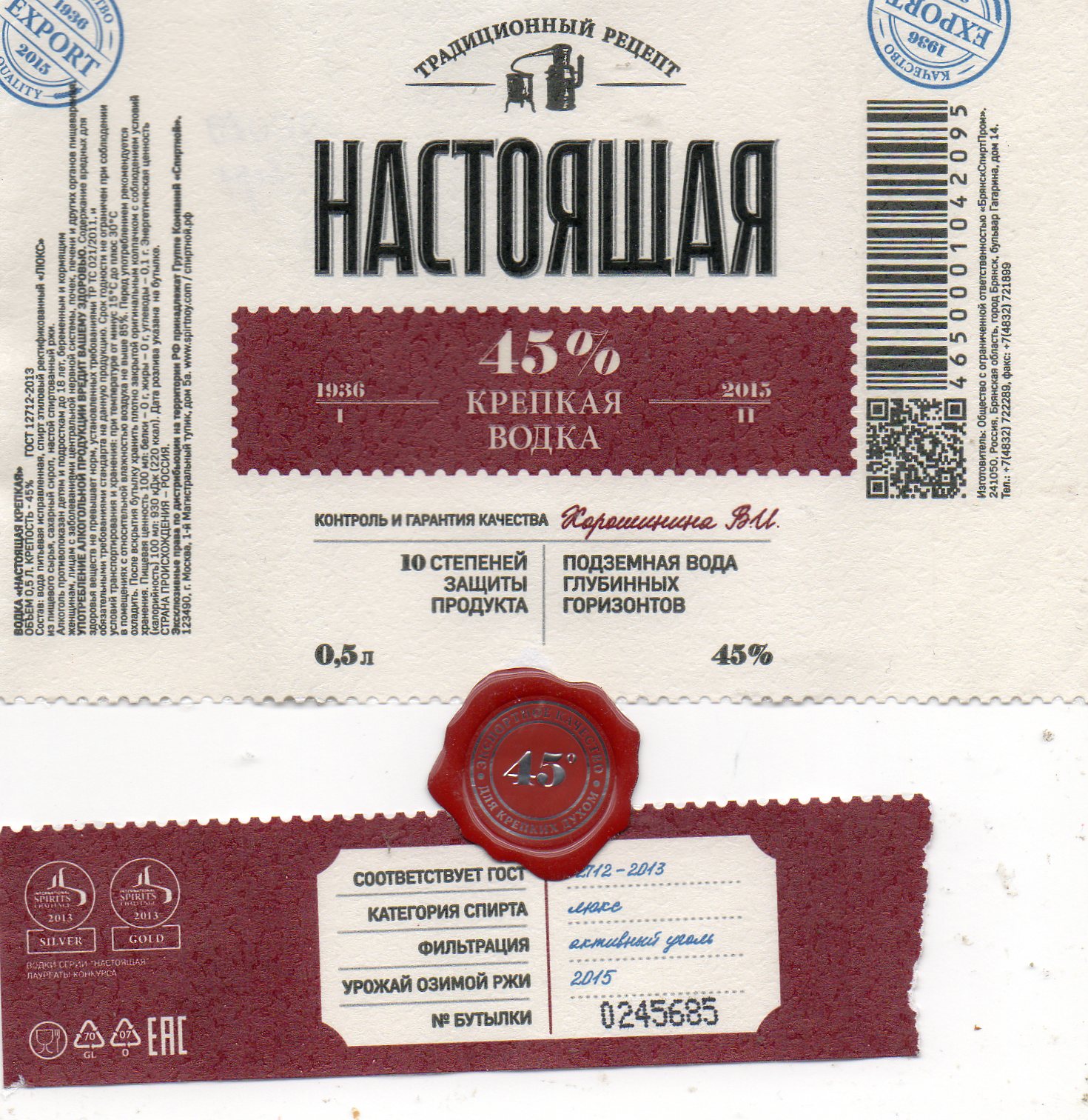 Крепость в градусах: 45