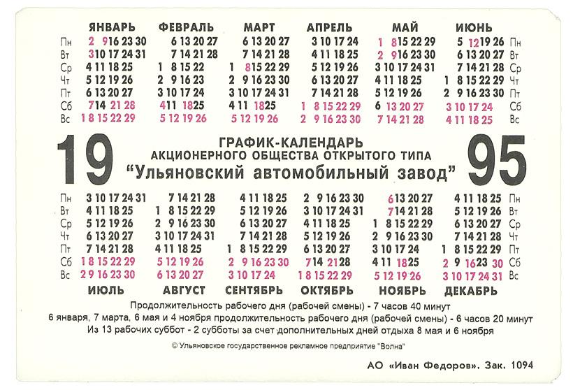 График-календарь АО «УАЗ» на 1995 год