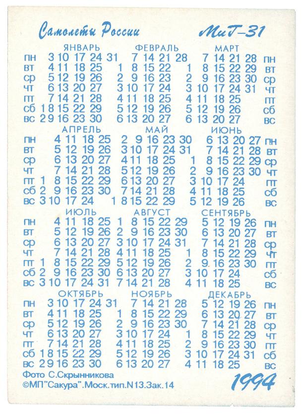 Серия: Самолёты России (1994)