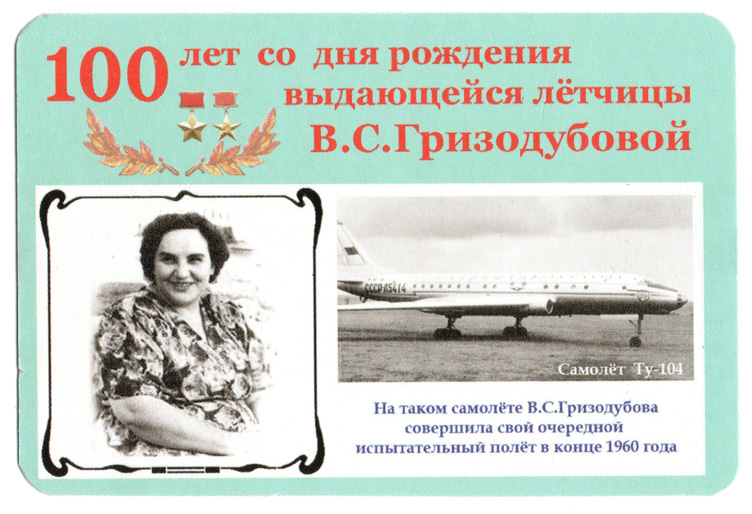 Серия: 100 лет со дня рождения выдающейся лётчицы В. С. Гризодубовой