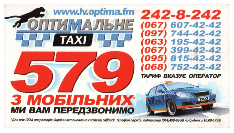 Оптимальне таксi. 579 з мобiльних