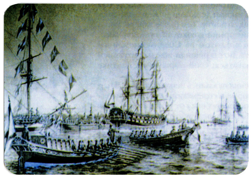 Изображение: Картина С. Д. Всеволожского "Смотр флота на Неве"