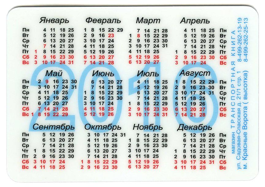 Вариант А - пластиковые календари, на оборотной стороне реклама магазина «Транспортная книга»