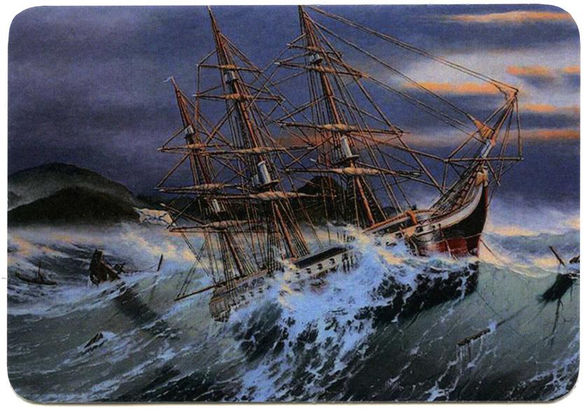Картина Валерия Шиляева «Гибель фрегата «Диана» в б. Симода. 1854 г.»