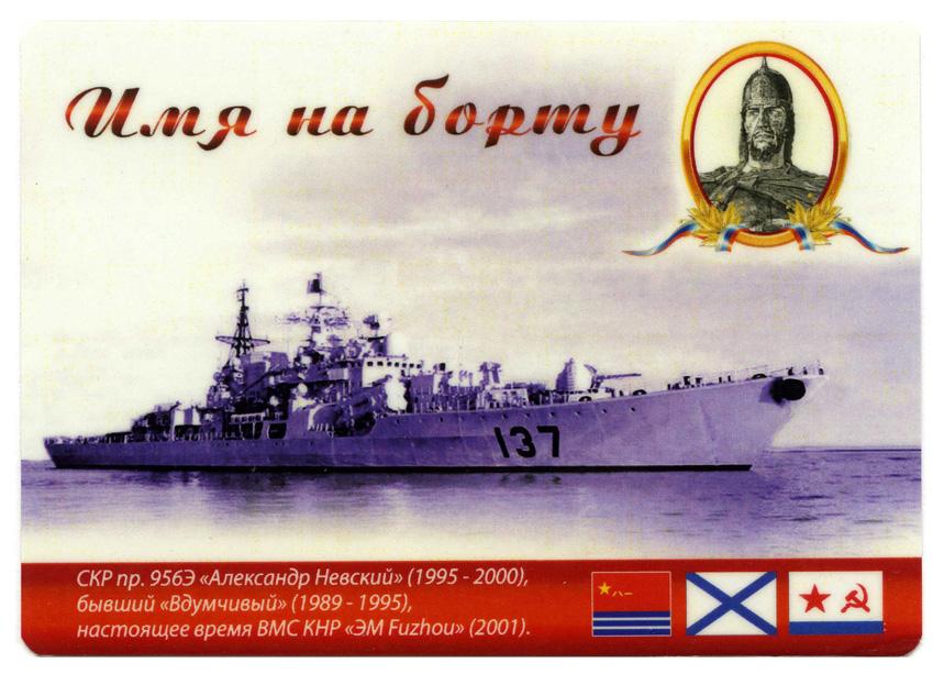 СКР пр. 956Э «Александр Невский» (1995-2000), бывший «Вдумчивый» (1989-1995), в настоящее время ВМС КНР «ЭМ Fuzhou» (2001)